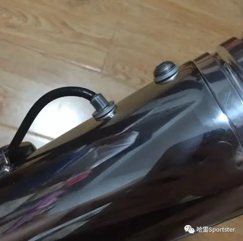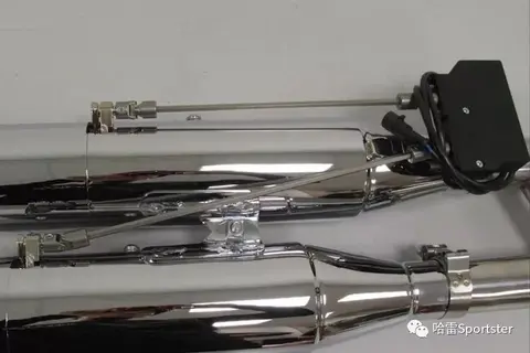 上图是一款手动拉线控制的排气是安装在其同品牌的排气前后段中间,这可能是为哈雷量产的可调音排气的第一款.出现有一定的年头了,未见过实物.