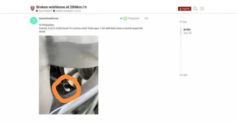 同时在瑞士也同样发生过类似断轴事件。一位瑞士车主驾驶者特斯拉Model S 90D以200公里时速从斯图加特前往苏黎世,突然一声巨响,伴随着方向盘锁住,车头浓烟滚滚,前悬架断裂,所幸他稳定住车辆没有受伤,随后车主向特斯拉索赔,遭到特斯拉方面拒绝。