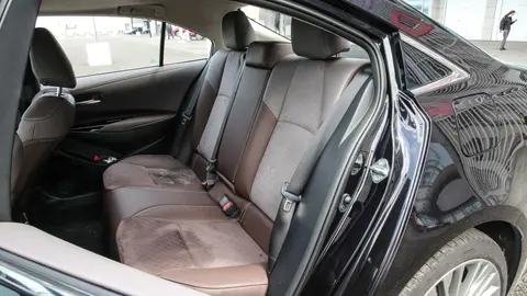 亚洲狮相较卡罗拉,轴距加长了50mm,长度更是多出了85mm。数据上的改变在空间上有着直观的变化,上图体验者的身高为187cm,前后排空间与同级别车型相比,整体空间表现要更加优异。