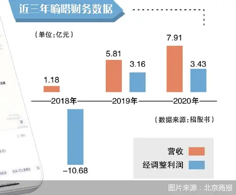 2020年,嘀嗒总营收7.91亿元,较上一年增长36.3%;按非国际财务报告准则计算,经调整利润总额3.43亿元,较上一年增长8.7%。