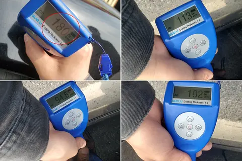 这台车的车况怎么总结呢?目前来看是没有事故的,大致捋一下:左前车门、前挡风玻璃怀疑更换,前后杠拆装喷漆,右前翼子板喷漆,发动机有过大修的痕迹而且如果买到手的话还得再大修一次,内饰磨损非常大而且有功能键缺失。