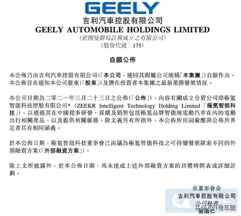 回想今年6月25日,吉利汽车突然宣布撤回科创板上市的申请,其中撤回的原因就有提到因公司经营决策和战略调整有关。而就在撤回登陆科创板的当天,吉利汽车还发布了一则公告,宣布旗下的极氪汽车将探索不同的外部融资方案。