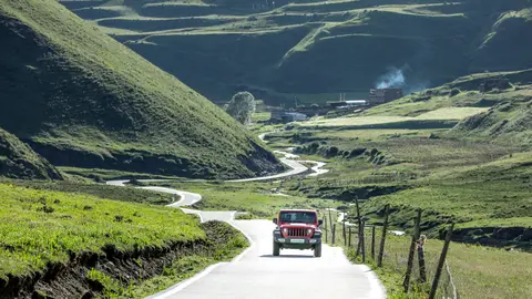 上到4000米以上的高海拔,电动机的优势得到了巨大的发挥。不受海拔影响的低扭输出让牧马人4xe的非铺装路表现要远远好于自己的同门燃油兄弟。事实上,同行的燃油版牧马人在高海拔地区动力缩水非常明显,涡轮迟滞带来的动力缺失也被放大,相对来说,4xe车型在非铺装路面上坡时的扭矩更加充足,下坡时也可以用动能回收系统辅助减速,无论是城市驾驶还是高原动力表现,4xe的表现的确要更胜一筹。