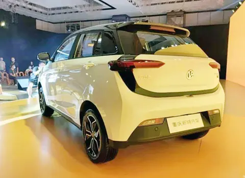 从侧面上看,略微上扬的腰线和侧裙先让这个可爱的小家伙变得灵动起来,白色的车身搭配上黑色车顶呈现出充分的运动感,从具体车身数据上看,比现下大火的五菱宏光MINI EV要优秀很多,完全是一个完整两厢车的模样。车尾部分设计新颖,黑色的线条包裹着后备箱边缘,狭长的横向车灯像极了眯起来的双眼,慵懒舒适。
