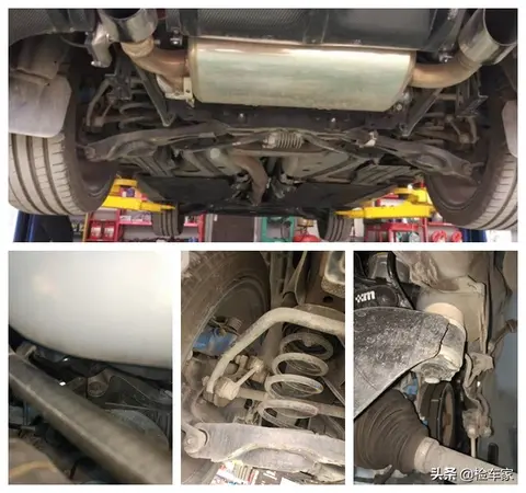 最后检查底盘,这阀门、粗壮的排气一看就是后改的,检查发动机变速箱的固定螺丝,没有发现拆卸痕迹,变速箱的支架也没有拆卸痕迹,后悬挂也正常。