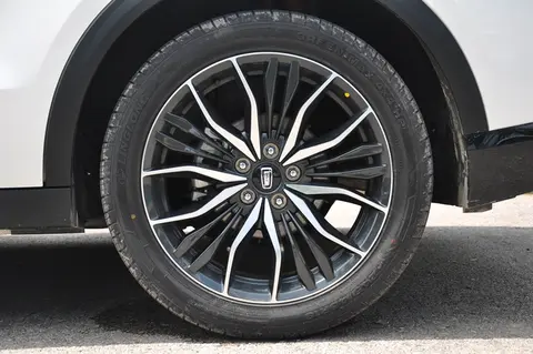 劲享系列的车轮,均为19英寸,匹配245/45R19轮胎。这是玲珑轮胎当中的“绿行”,是一款专为SUV设计的轮胎。