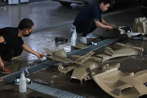 拆下来的整车内饰覆盖板,全部清洁养护一遍。
