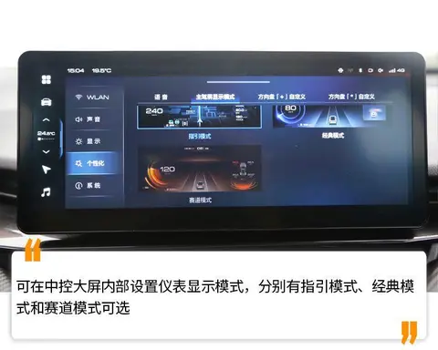 10.25英寸的全液晶仪表显示信息丰富,一共支持三种显示风格,分别是指引模式、经典模式和赛道模式。其中指引模式会把地图投到仪表中来,方便驾驶时使用。
