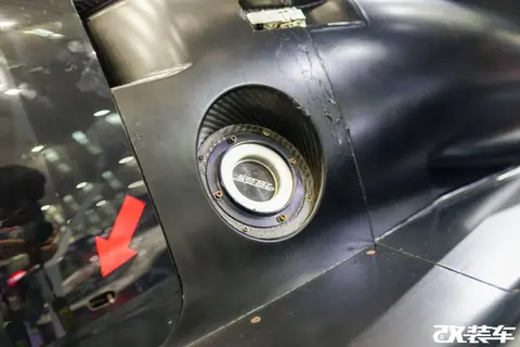 993 RWB上那款阶梯式的大尾翼,还有跟尾翼融为一体的特殊进气口,都被移植到这台卡曼身上。再加上深凹得能存放东西的负ET轮毂,很有RWB那味儿了。