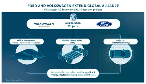 在2020年6月福特汽车就与大众汽车签署了合作框架,主要是福特和大众相互支持,利用各自在皮卡以及商用和电动车的优势互补,共同满足欧洲和其他地区客户快速发展的需求。