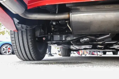 首先外观方面,第一眼看到这款车就被强烈的视觉感所冲击到:黑色车身搭配红色撞色下包围,看起来就很有驾驶感;扁平犀利的车头,一眼展示出这款车凶猛的运动特性;分体式的格栅设计又凸显出层次感,区别于其他车型的整体式格栅,十分独特。矩阵式的大灯狭长又犀利,再加上耀眼的红色下包围,既运动还有未来感,整个气场很足。