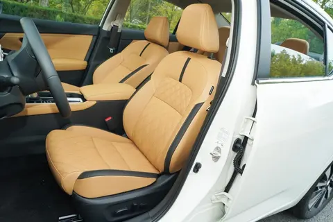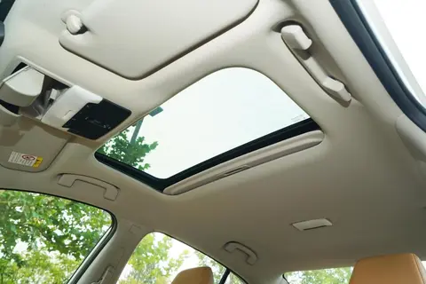 座椅的造型在视觉上比较充实,内部的填充物偏软,采用真皮包裹,舒适性上是没得说,坐垫及靠背中间加入了菱形缝线点缀,稍显高级感。前排座椅只有主驾驶支持电动调节,可调调节8向,而副驾驶座椅只能手动4向调节。后排座椅材质更软,坐上去有着明显的下陷感,名副其实的“移动沙发”,同时它中间座位提供了头枕和扶手。