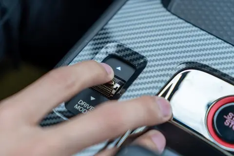中控台的左侧还设计有模式切换旋钮,旋钮响应时的机械感非常不错,设计的位置也比较人性,日常驾驶时不需要分神也能轻松实现模式间的来回切换。