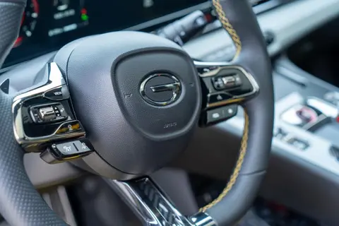 首先影豹的动力总成由广汽集团自研的1.5T发动机和一套七速双离合变速箱共同构成,这套动力总成能够爆发出177匹的最大马力和270牛·米的峰值扭矩,账面数据在同级之中还算不错,不过官方宣称的0-100加速仅需6.95s,实测的话可能会有一些差距。