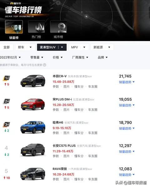 2022年2月国内紧凑型SUV销量排行版