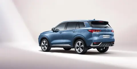 从侧面来看,新车的身型属于标准的SUV,高大硬朗,底盘较高,搭配外鼓的腰线和悬浮式车顶,气势十足,颇具运动感。尾部的设计也很硬派,尾灯的造型修长,带有回旋镖式的灯带,与前大灯相互辉映;下方的后保险杠造型粗犷,巨大的银色装饰件提升了硬派气质。