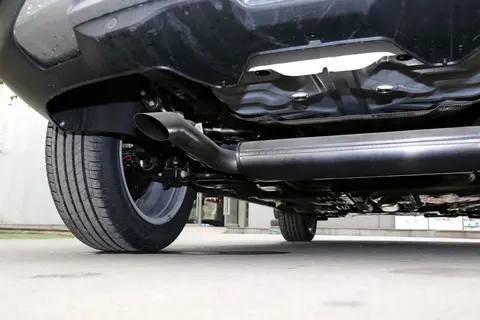 车尾设计上,后风挡结构是比较小巧的,下边缘也采用了圆润弧度处置,配合后保险杠抬升明显的硬塑包围与独立金属护板结构,整个车尾视觉重心也会显得比较高。