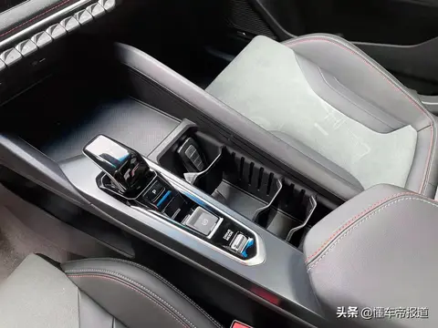 在换挡区域,车辆配备了新样式的电子换挡杆,前方带有手机充电储物区,杯架区域带有3片插片,可将储物空间灵活分配,满足物品放置需求。