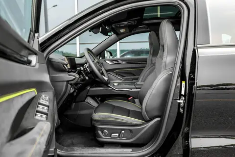 中控、仪表台和门板灯有大面积软质饰面,还用了不少仿碳纤维饰面。饰面搭配了纹路设计,有绿色的配饰饰条也有镀铬修饰。内饰的用料和做工都有讲究,也有注重细节。档次感值得肯定。