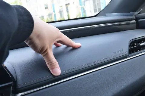 三辐式方向盘的大小适中,皮质包裹很细腻,握感厚实。7英寸液晶仪表盘显示较为细腻,实用性很不错的,8英寸的显示屏采用横屏显示,内部UI与布局都采用极为简洁的设计,配置上带有百度CaLife、车家互联、蓝牙电话等,都是较为实用的功能。空调控制区域的物理按键比较多,需要一定时间的适应,功能上采用双区自动,两边的拨杆用来调节温度。