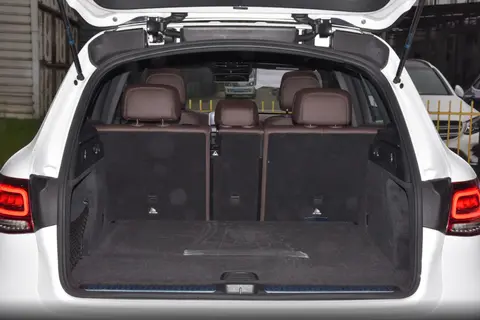 奔驰GLC 300L的车尾部分依然沿袭了前脸的优雅风格,楔形的尾灯灯腔内部规整地布局着尾灯组,灯组中间通过号牌区域的凹陷作间隔,搭配上相对外凸的后保险杠,增强了尾部的立体感,尾窗上方配有一个小型的扰流板,车底部分使用了黑色组件包围,同时加上了镀铬条作装饰,两侧还配有金属材质的排气装饰,保证了基本的运动感。