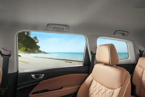 佳辰的7个座椅造型符合人体工程学,坐垫的可使用面积为1198cm2,加上又是10mm 双密度发泡舒适材质,坐在上面的柔软度还不错。为了进一步提高乘坐舒适性,佳辰还配备了独立USB接口、独立的后排空调出风口、9个立体音响等,美中不足的是,佳辰的后排独立空调出风口,并非像凯捷那样分别安置在每排座椅两侧上方,贴心程度有待加强。不过,佳辰考虑到后排采光问题,特意将中后排车窗面积扩大,中排车窗开口面积为3500cm²,第三排车窗开口面积为1700cm²,使得整个车内比较通透。