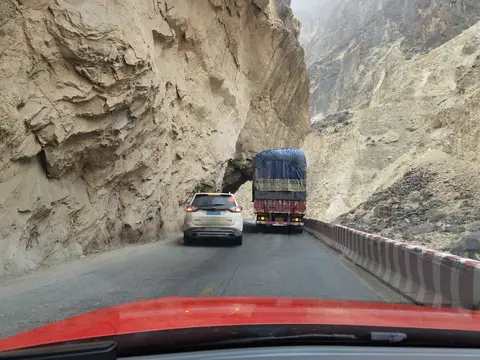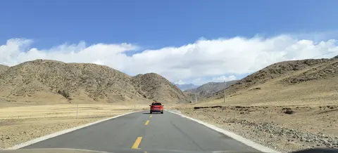 219国道,在过拉孜县后我们转向219国道(我们此行没有去珠峰大本营)去阿里地区,此时的219国道基本是高山草甸上行进,最低海拔都接近4000米,上下双车道,但车流量少,视线开阔,区间限速也从318线的60公里/小时改为70公里/小时。虽然也有几座海拔过5000米垭口,但天气变化少,除了风大基本都是蓝天白云,虽然我没有见到交通事故,但这里行驶的车辆车速都很快,即使是大货车车速也不慢,还有的大货车见对向来车继续过线行驶,219国道路基很窄,避让空间小,有时我只好停车避让。