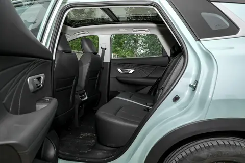走进后排,地板平坦,天窗够大,后排敞亮也宽松。后排座椅够厚实,靠背也支持调节。舒适性也不错。