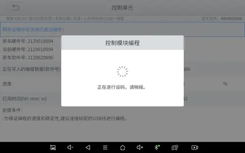 此编程步骤多,时间较长需严格按提示操作,如操作失误会导致控制单元损坏。