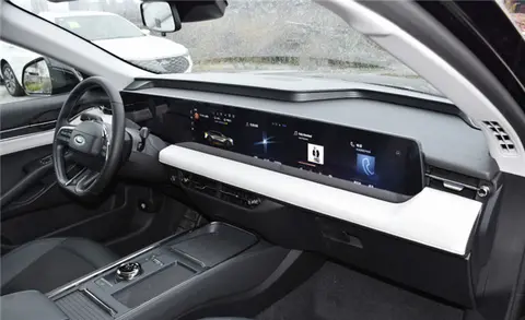 内饰方面,中控台布局很简洁,车厢内使用了很多软性材质覆盖和皮质包裹,深浅双拼配色让氛围不会沉闷,但是新车气味有些大,建议多开窗通风处理,有些细节的做工不够精细,要问中控大屏有没有,这个是必须的!呵呵,12.3英寸的液晶仪表和27英寸的触控液晶屏组成了一体式大屏,可以显示丰富的车辆信息,不过据一些车主反馈说,使用过程中车机系统偶尔会出现卡顿的现象。