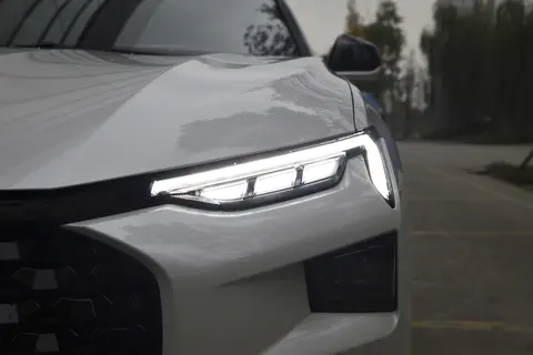 从外观上来看,肌肉感十足,特别有美系车的样子。前格栅采用六边形设计,中网搭配鳞甲镀铬装饰,在上方,我们可以看到贯穿式头灯,和两侧灯组结合,点亮后比较醒目。