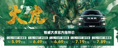 近日,SWM斯威汽车旗下全新中型SUV——SWM斯威大虎(图片|配置|询价)正式上市,新车提供5款配置车型可选(均提供5座和7座版车型),官方售价5.99-7.89万元(5座和7座版车型售价保持一致)。新车外观采用硬朗的设计风格,内饰设计也偏向实用性。动力单元方面,新车搭载一台1.5L自吸发动机,匹配5速手动变速箱。