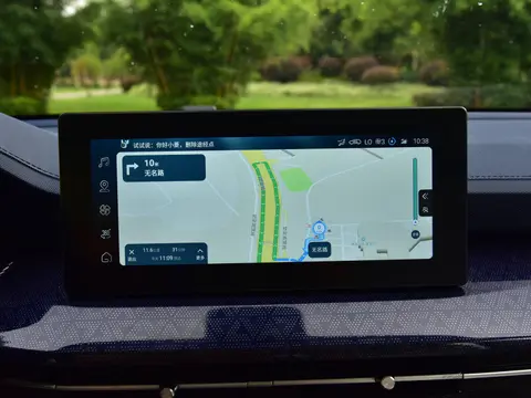 内饰方面,色调采用黑白的双色搭配,看上去偏向家居风格,中控台比较有层次感,上层为软硬材料包裹,中间使用了亮色的纹理饰板,下层则采用贯穿式缕空设计,内嵌空调出风口和饰条,整体做工精细。搭配10.25英寸中控屏,中控屏上集成的功能也挺多,360度全景影像、导航、道路路况、语音识别控制、车联网、OTA升级等。