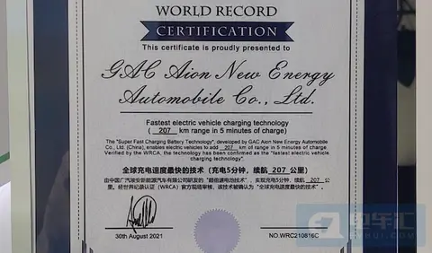 据悉,巨湾技研的XFC极速电池(3C版本)去年9月30日已经搭载在广汽的AION V PLUS 70 超充版车型实现量产上市销售,同时,6C版本XFC极速电池也在去年8月份获得世界纪录认证机构(WRCA)颁发的“电动汽车最快充电技术”世界记录认证,目前6C车型已获得了整车的国家公告。