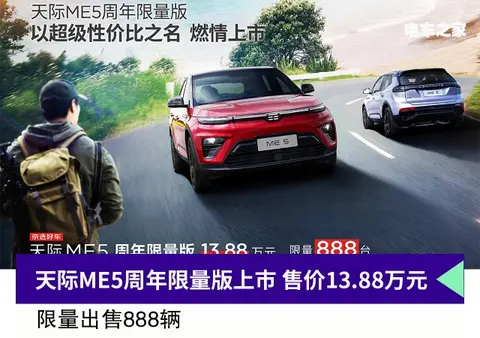 9月1日,电车之家获悉天际汽车推出M5周年限量版车型,新车限量发售888辆,售价13.88万元。