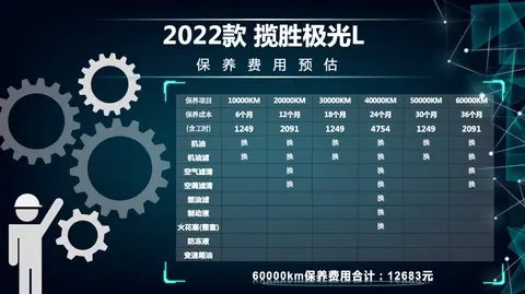 供大家参考,像首保更换机油、机滤这样简单的项目,新款揽胜极光L加上工时费为1249元。我们大致计算了一下,60000km的总保养费用是12683元,按照一年20000公里计算,每年保养花费约为4227元,不算便宜。