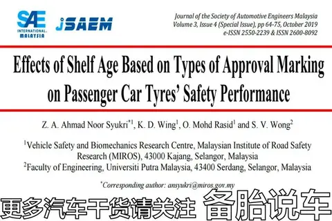 马来西亚汽车工程师学会有篇论文,《基于轮胎库存认证对轿车轮胎的影响》。