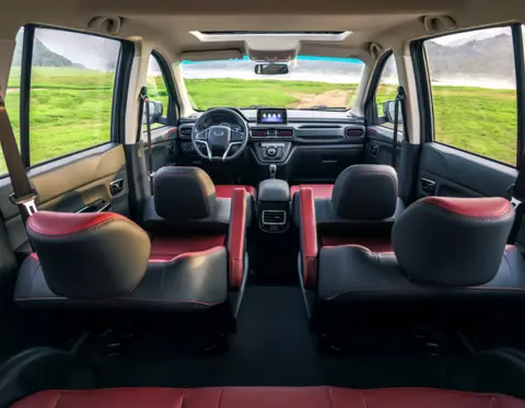 OK,其次咱们再来说说它的内饰部分。内饰方面的话,跟市面上那些主流车型相比,可能没有那么时尚科技,但是这种简洁干净的布局,不仅看起来舒适,同时也更好上手。悬浮式的液晶可实现蓝牙,多媒体,收音机等娱乐功能,配置的话,则有胎压显示,制动力分配,倒车影像等。空间方面新车提供了7座布局,结合它2780mm的轴距,可让乘客享受到更加宽敞舒适的乘坐环境。