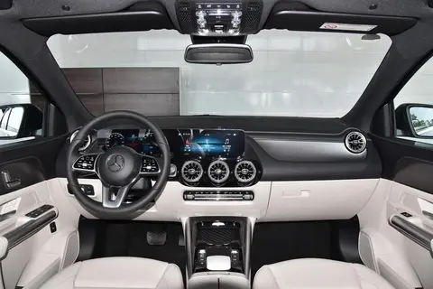 内饰方面则基本延续了GLA的造型,圆形的出风口造型依然显眼,圆润的方向盘有着不错的握感,两块10.25英寸的连屏设计是奔驰的经典标志,副驾前方的银色面板则彰显出一定的豪华氛围。