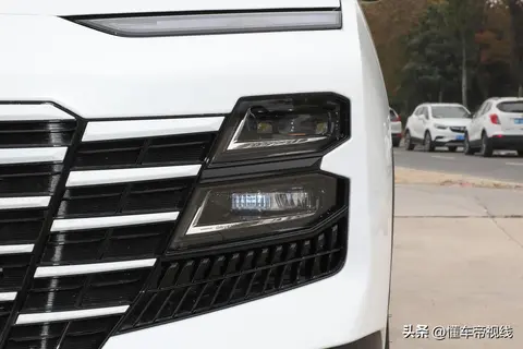 捷途大圣采用近年来比较流行的无边界式进气格栅布局,内部为横向装饰设计,丰富了前脸的视觉层次,相比现款捷途X70、X90风格差异明显,新鲜感比较强。此外,新车采用分体式大灯组,入门车型采用卤素光源,实拍车型采用LED光源,实用性和视觉效果都更出色。