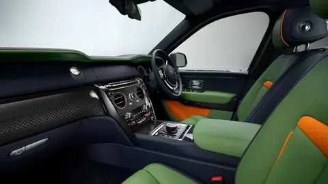 Fu-shion车型则将高阶时尚与实用主义完美结合,这些库里南车型可选的车身配色包括军绿、烧胎灰、锻造黄或龙卷风灰。此外,还有两种撞色组合可选:军绿+海军蓝+柑橘,以及北极白+克什米尔灰真皮+锻造黄内饰。