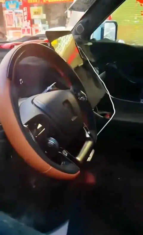 从曝光的图片看,多功能方向盘中间的logo位置的轮廓与此前公布的仰望标志完美重合,并采用了平底边缘的设计;四幅式方向盘的造型与路虎揽胜的方向盘有着异曲同工之妙,看起来十分具有力量感;最引人注目的就是方向盘左边图标下方的“模式”二字,证明比亚迪的中文标识得以保留,文化属性十分得体;而搭配上中间的悬浮式中控车机大屏,更增加了新车的内部豪华质感,目测悬浮式中控车机的样式应该是可支持上下移动的,对于定位于100万以上的车型,在功能配置上也会很强大。