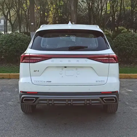 车尾部分,奇瑞瑞虎8 PRO插混版拥有经过熏黑处理的贯穿式尾灯,左右两侧灯组内部融入诸多点阵式发光单元,而后包围区域则使用黑色装饰结构包裹,并配有双边共两出镀铬排气尾管。另外,代表插电式混合动力形式的“DP-i”尾标也没有缺席。
