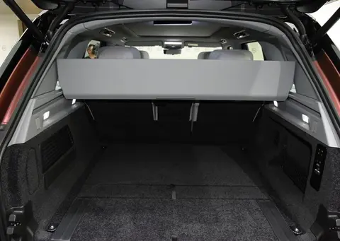 内饰部分,上一代车型简约的风格在新车上得以延续,造型新意不多,但配色方面让人眼前一亮,特别是白灰相间的颜色,搭配真皮材料,显得质感很好。功能区域方面,中控造型简洁,其他功能多以旋钮设计,比如全地形旋钮、音量旋钮和空调控制旋钮等等。新车内部还有很多小尺寸模板,搭配白色陶瓷材料,彰显高端感。科技方面,液晶仪表盘、中控屏和电子挡把,新车一样不少,两辐式方向盘握感舒适,上面集成不少实用的功能。车内空间比较大,后排配备了小桌子,方便办公。