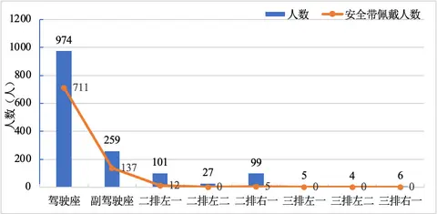 图 1 乘用车乘员位置分布及安全带佩戴情况