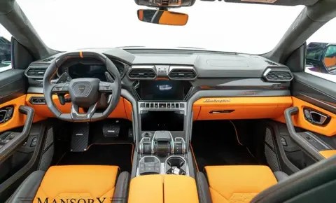 转到车内,新车内部使用黑色与橙色做拼接效果,座椅部分是大面积的橙黄色,有打造多边形设计,赛车桶装座椅造型,完全展现出兰博基尼Urus的超跑核心思想。整车内部完美展现如何将精湛的工艺和高端的材质相结合,无处不散发出奢华的富贵气质,珍稀柔软的牛皮材质与舒适性极强的麂皮绒是改装厂最爱用的材质,在它们的作用下,奢靡与优雅原来是可以共存的。