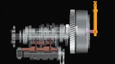 可能有的小伙伴会好奇,它的变速机构就这么高能吗?其实弯梁车的变速过程也没有我们想象中的那么复杂,它的特殊点主要就在两个离合器,初级离合主要负责分离器的作用,它类似于踏板车的甩快结构,会随着转速的升高自动结合。