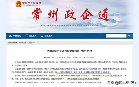 [懂车帝原创 产品] 日前,一则比亚迪汽车文化园和直营事业部将在江苏常州设立的消息被曝光。同时我们从中获悉,比亚迪旗下高端汽车品牌仰望系列计划于2023年8月在此举行首发仪式。考虑到此前曾有消息称,仰望U8(图片|配置|询价)将在4月开幕的上海车展亮相,并于第三季度上市,不知道这是否代表仰望U8会借此机会在8月正式上市。