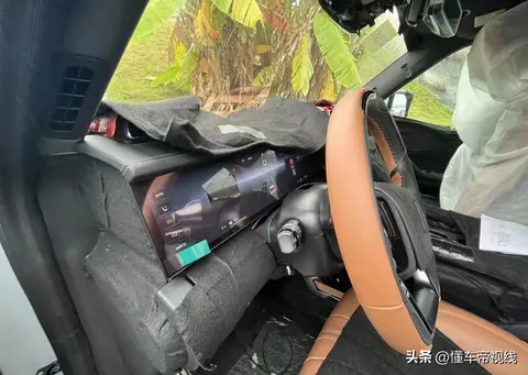 结合此前谍照,仰望U8车内采用黑色与棕色的颜色搭配,方向盘为D形设计,并采用双色皮质包覆。全液晶仪表盘尺寸可观,显示信息丰富,效果也比较出色。中控屏虽然被遮挡,但从黑布包裹的造型来看,中控屏将是竖向摆放。从前排细节来看,仰望U8将会在A柱和副仪表台位置配备扶手,A柱位置还有扬声器,座椅则带有多个方向的电动调节功能。