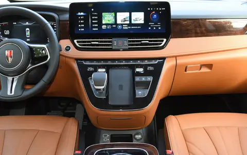 第一眼看到大家什么感觉,是不是感觉很大,确实很大,红旗HQ9拥有着5222mm的长度,和3200mm的轴距以及1935mm的高度,不过小编觉得侧面有点像丰田埃尔法,HQ9的前脸采用的是红旗家族式前脸以及一个夸张的格栅,而这个格栅有个非常好听的名字叫高山飞瀑,接下来我们看看内饰